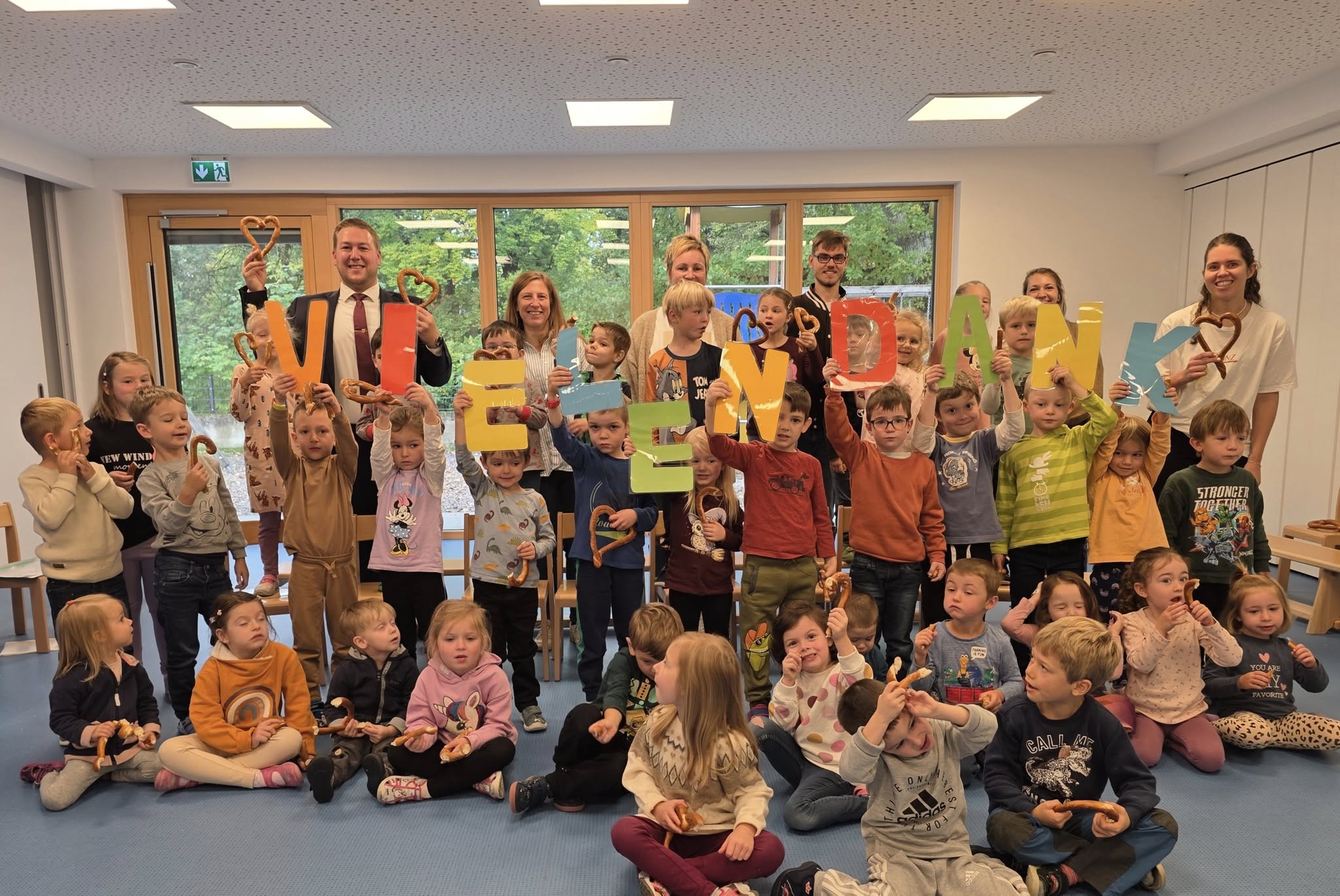 Auch in diesem Jahr wurde eine besonders schöne Tradition fortgesetzt. Die Kindergarten- und Krippenkinder der beiden Kitas sowie das Personal wurden mit einer ganz besonderen Brotzeit überrascht – der Deininger Herzbreze. Gemeinsam mit den Kindergartenleitungen Andrea Schirmer und Julia Lang verteilte der Vorsitzende des St. Josefsvereins, Bürgermeister Peter Meier, in allen Gruppen der Deininger Kitas die Herzbrezen. Die Kinder freuten sich sichtlich über diese tolle Überraschung. Gleichzeitig möchte der Träger mit dieser Geste zum Ausdruck bringen, dass die Kinderbetreuung in der Gemeinde optimal aufgestellt ist und in einer herzlichen Atmosphäre stattfindet. Die Kinder ließen sich die Brezen mit Vergnügen schmecken.